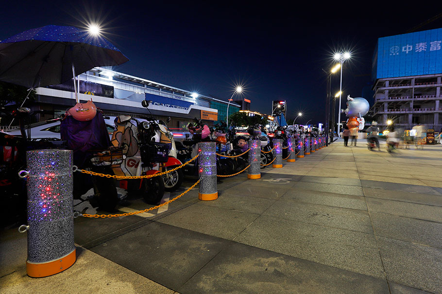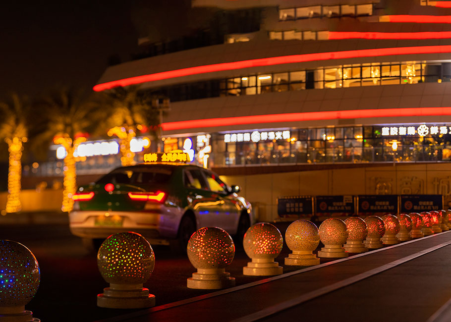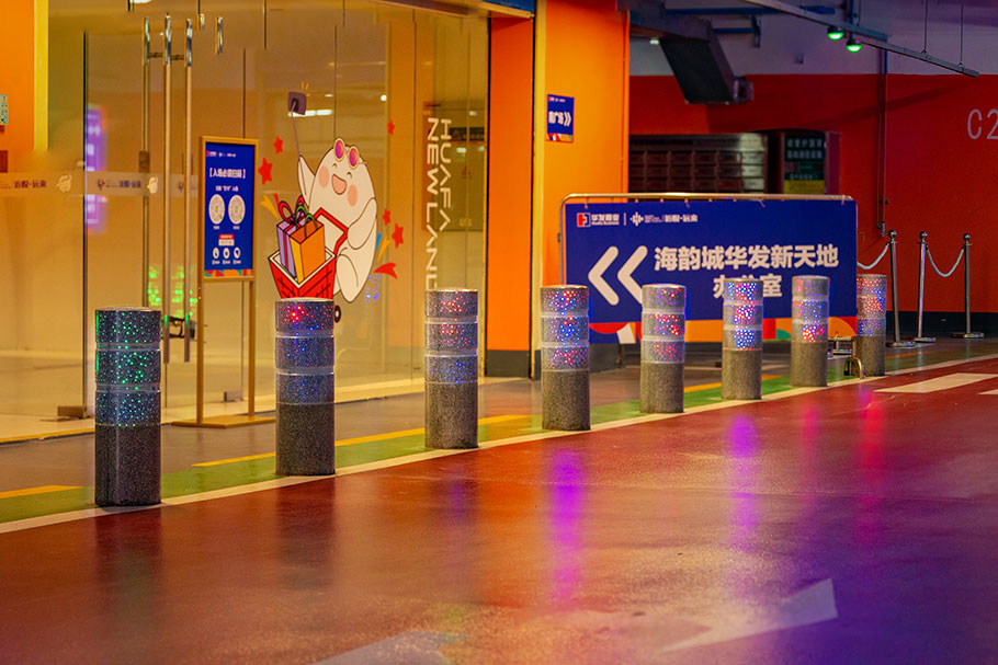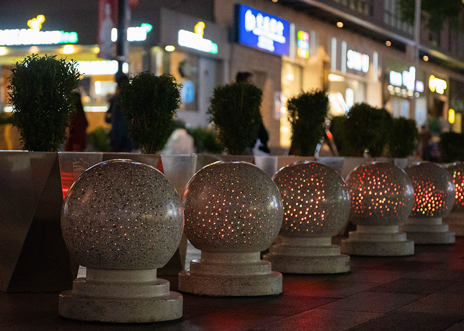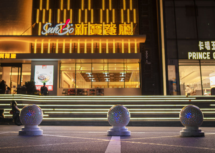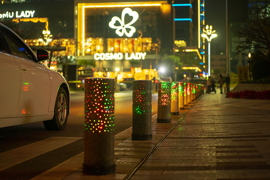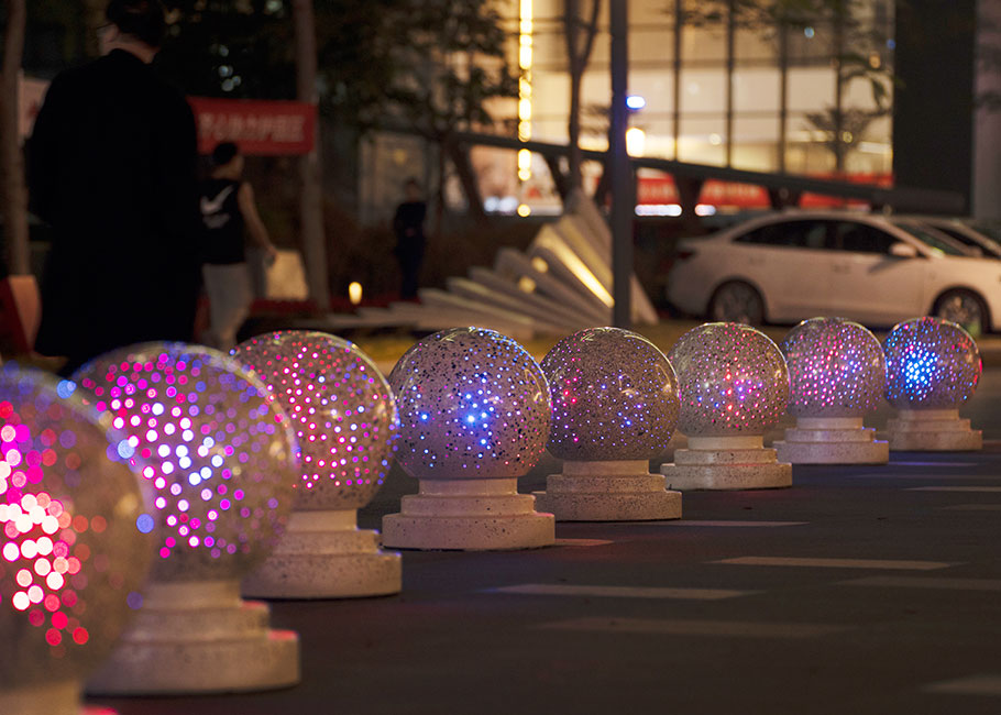 新型路障石材具有擋車(chē)功能,提升場(chǎng)所的形象和安全性,夜晚展現(xiàn)出特別絢麗的效果